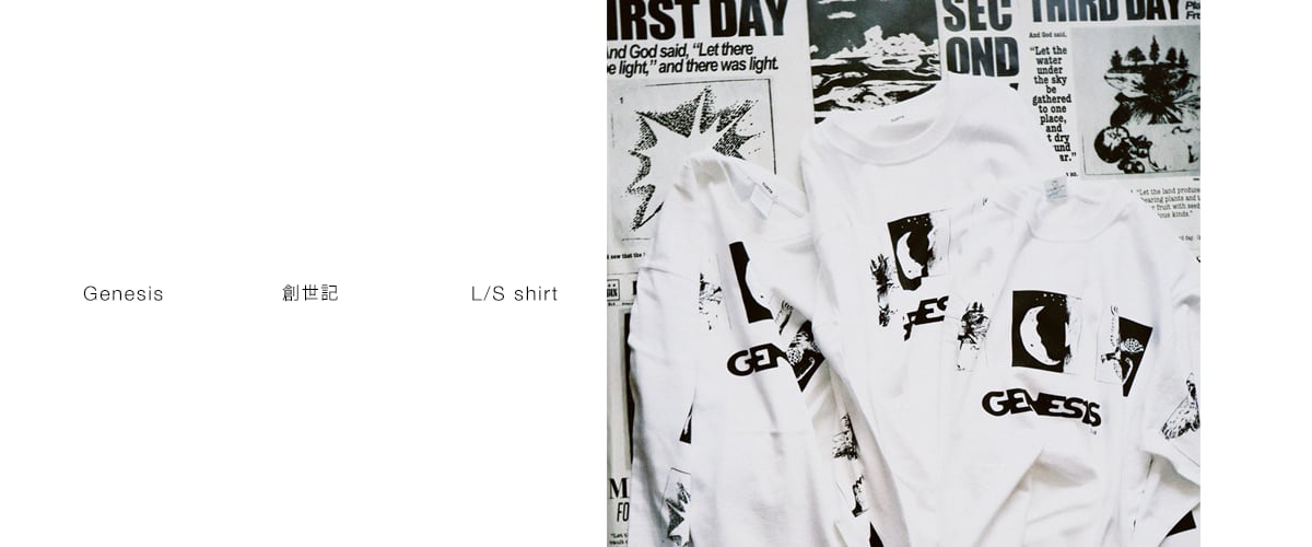 【Genesis】ロングスリーブTシャツ 始まりを意味する創世記。この地球、宇宙が7日間で出来たと語る聖書には、その様子が一日ごとに書かれている。 このストーリーをグラフィックに表現し、シルクスクリーンで新聞のようなプリントに仕上げました。 ユニセックス、LとXLサイズ。 ・5.6oz ・綿100% Lサイズ:身丈 74cm 身幅55cm 袖丈59cm XLサイズ:身丈78cm 身幅58cm 袖丈60cm ※洗濯の際は必ず他の物と分けて洗って下さい。 ※*US仕様のためラフな作りとなっていますので、商品サイズに個体差がございます。 "This is the account of the heavens and the earth when they were created" -Genesis 2:4- 「これが天地創造の由来である。」 創世記 2:4