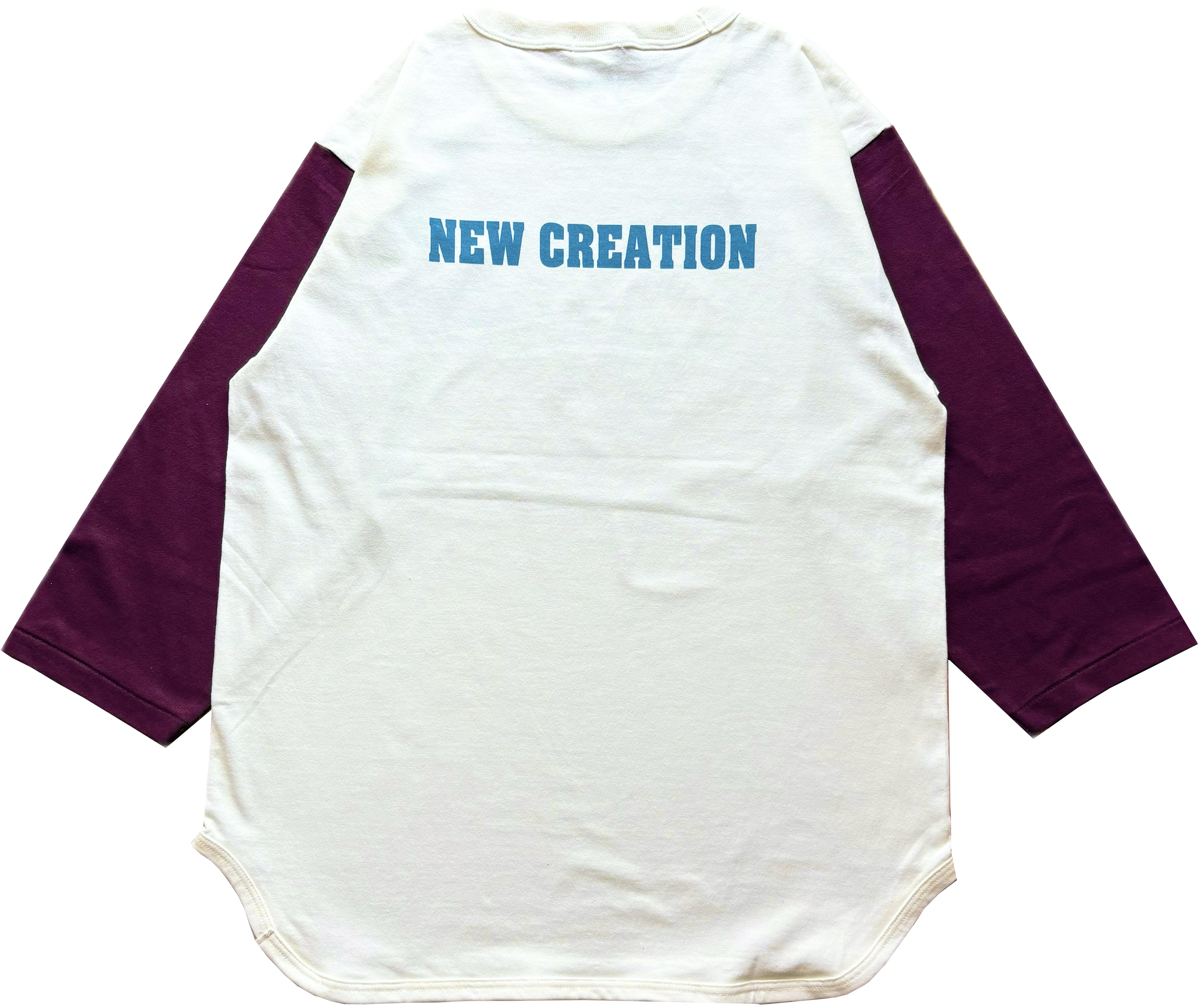 New creationロゴ入りヴィンテージライクのベースボールTシャツです。